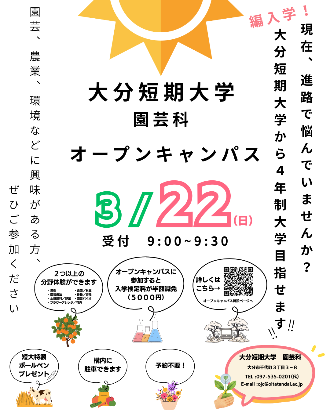 3月22日(日)にオープンキャンパスを開催します。
