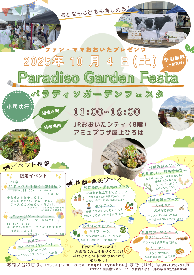 このイベントは、“園芸療法、園芸福祉”という概念をもっと広く知ってもらうために企画したものです。”植物”がもつ多くの機能的側面を活用しています。イベント内の出展ブースでは、植物を基調としたものが含まれる形で、一般の方々へ体験・販売などがなされると思います。是非、植物が持つ多面的な側面に目を向けて学習してみてください。